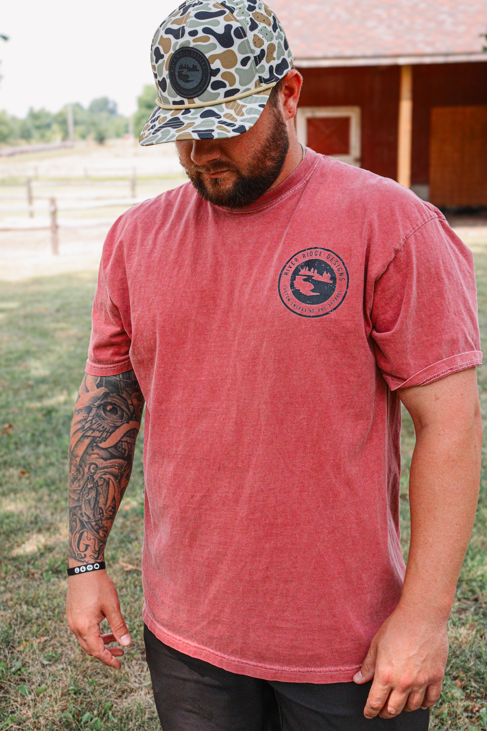 Image will be on back of t-shirt. River Ridge Logo will be on front left chest.